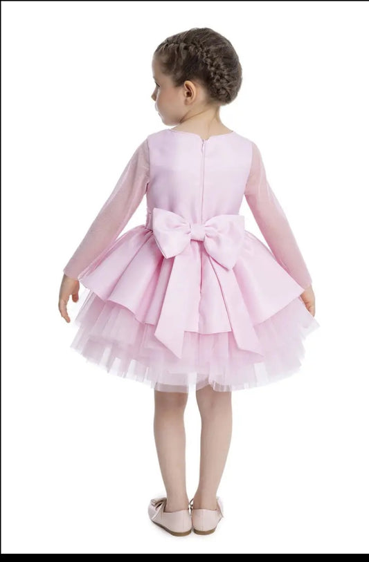 Baby Girl Pink Long Sleeve First Birthday Dress – Layered Tulle Party Dress