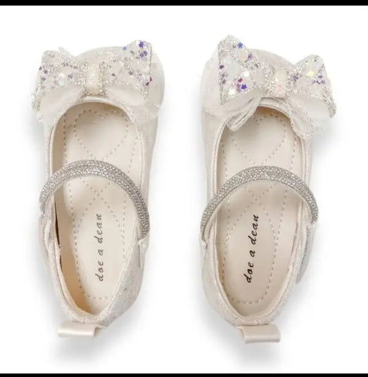 Girls Dress shoes Sparkly, White Bow and Glitter Casual Shoes