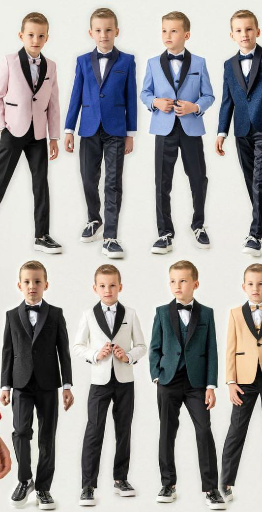 Boys 4-Piece Classic Black Tuxedo Set – Includes Coat, Vest, Pants & Bow Tie